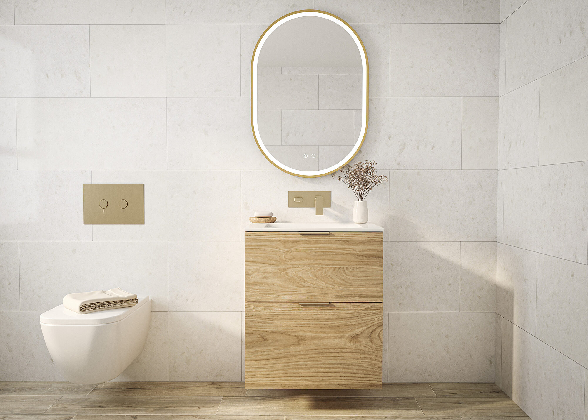 The Briella brushed brass mirrors elevate any bathroom with their striking PVD-coated brushed brass frames, complementing Tissino’s range of brassware, showers, and finishing touches. Available in circular, capsule, and rectangular shapes, these mirrors feature front-facing LED lighting with adjustable colour-changing capabilities, ensuring the perfect ambiance. With dual touch buttons for easy operation, the Briella mirrors combine practicality with luxury, enhancing the overall design of your space.