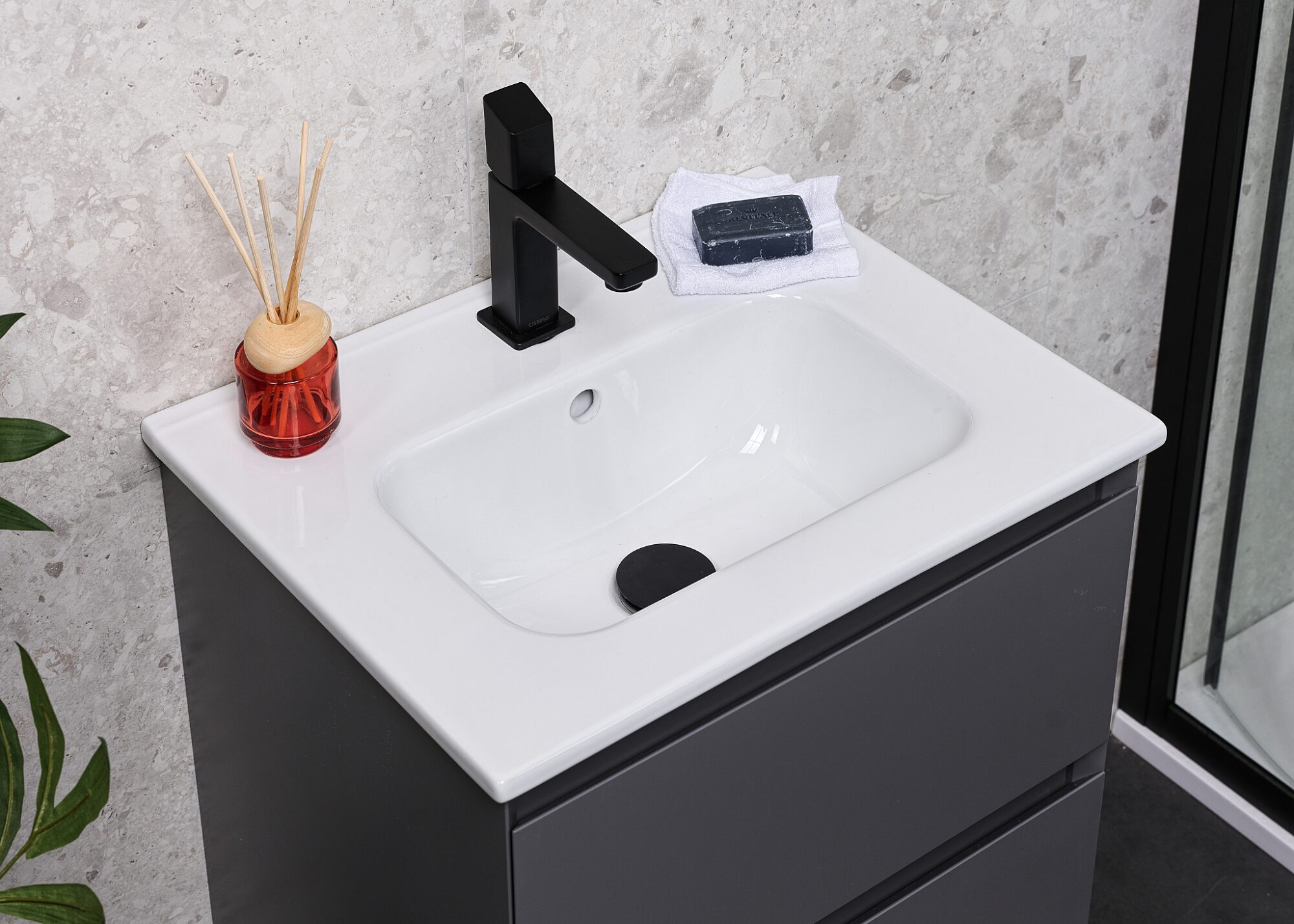 The Cortello ceramic basin features a sleek rectangular design with a deeper basin for added practicality. Available in 600mm and 800mm reduced depth sizes to pair perfectly with our Mozzano units.