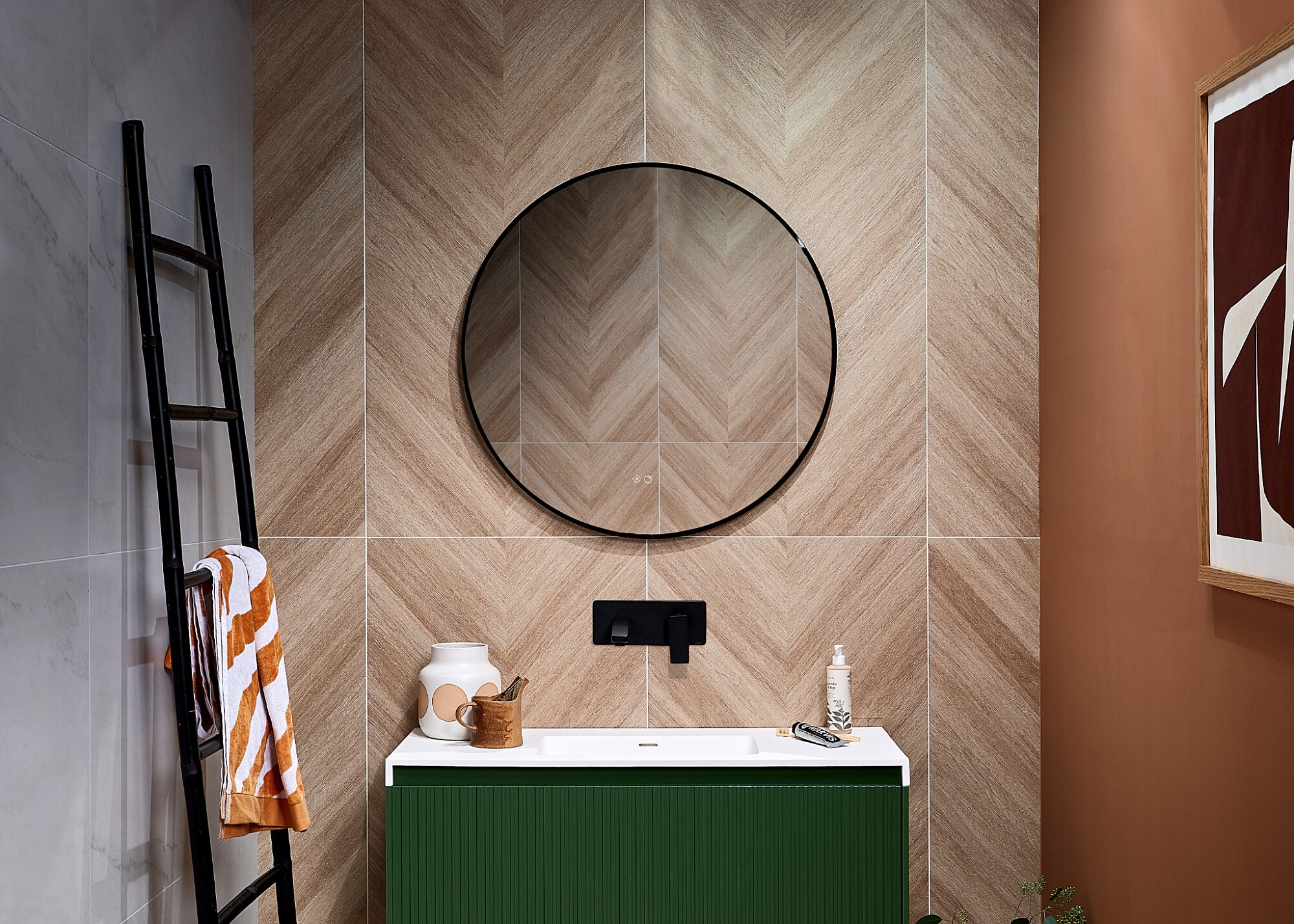The matt black designs in our Terzo bathroom mirrors collection offer a statement trim which pairs beautifully with other black details in the bathroom. Choose from two rounded options with a de-mist function and powerful Samsung LED lighting.
