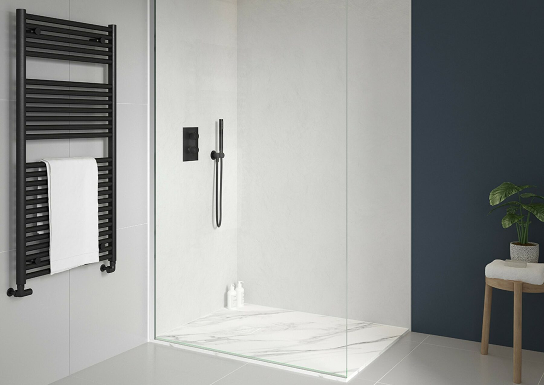 The sleek and minimal Giorgio2 shower tray features a natural slate effect finish and is available in five contemporary colours and a variety of sizes. A stainless steel grate is supplied as standard, with colour matched grates and a Brushed Brass option available separately.